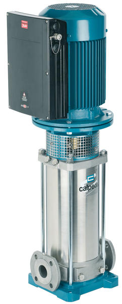 Вертикальный многоступенчатый насос с всасывающим и нагнетательным соединений того же диаметра и расположеным вдоль одной оси (в линию).
